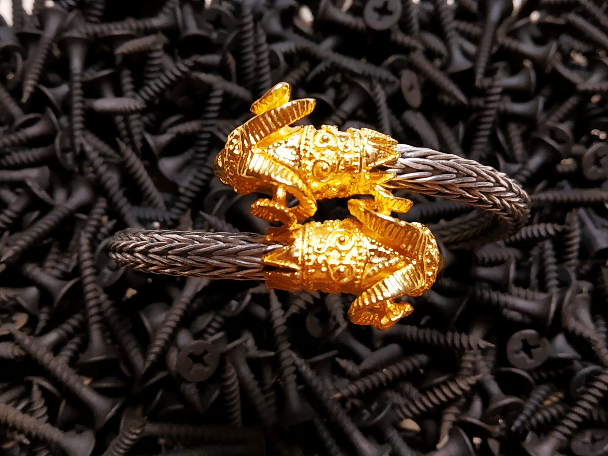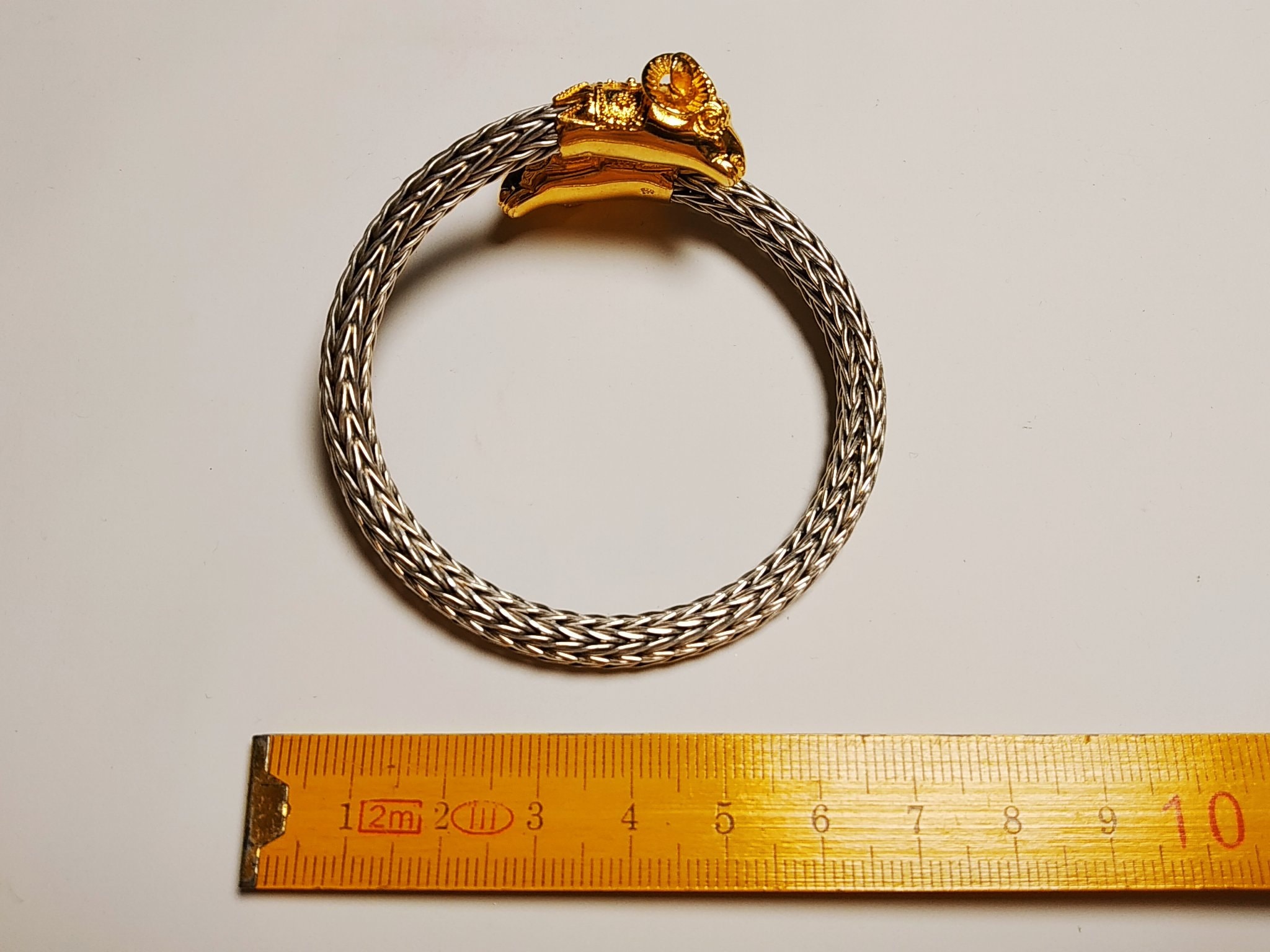 Sterling silver 925 and gold plated bracelet with ram heads, Hand knitted silver bracelet, Ancient Greece style bracelet