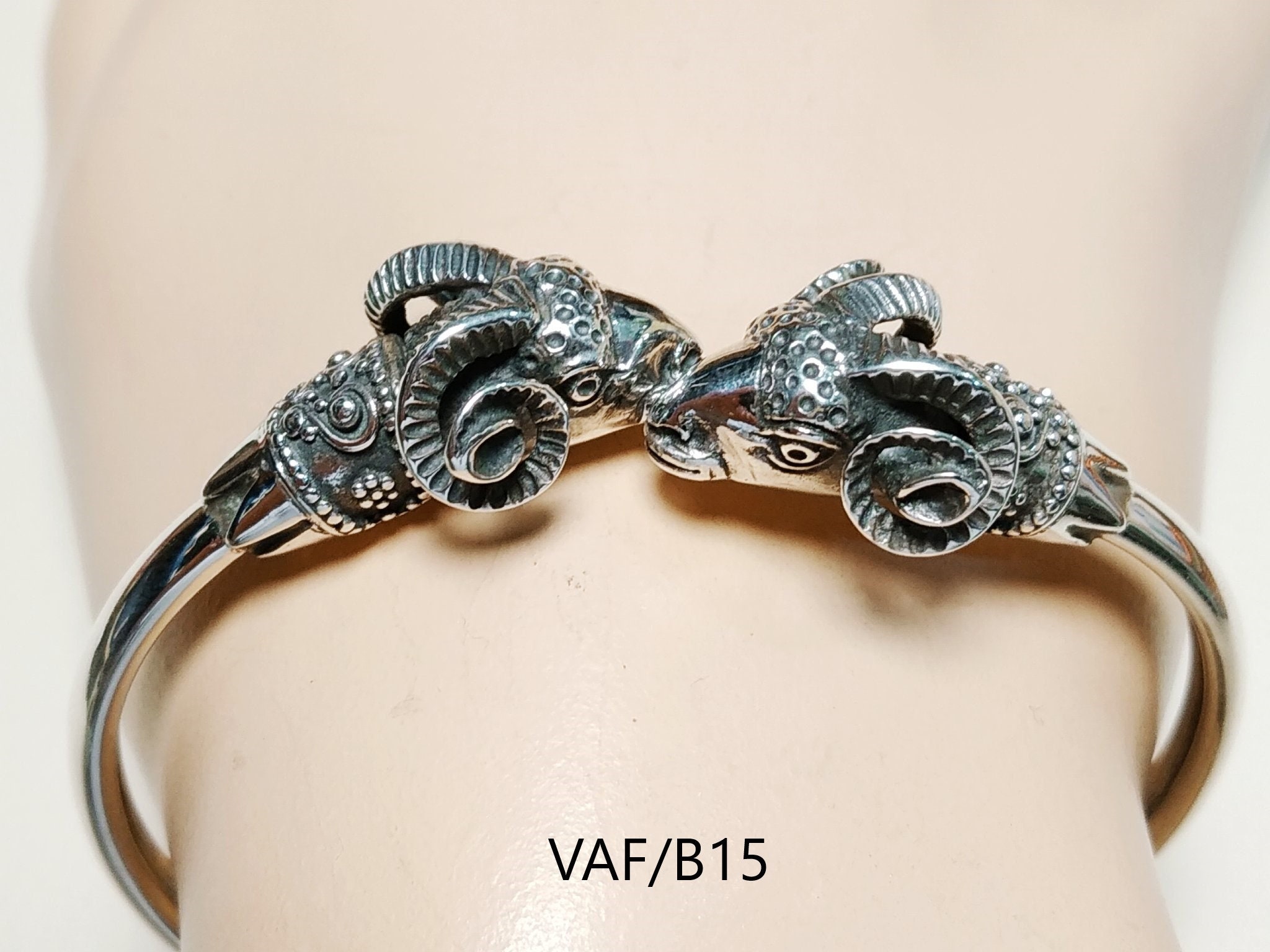Sterling silver bracelet with ram heads,Bracelet en argent avec tetes de belier,Pulsera de plata con cabezas de carnero